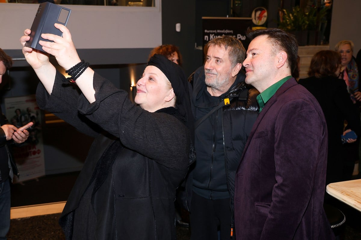 Ανάμεσά τους ο Σπύρος Παπαδόπουλος, η Νίκη Σερέτη, ο Λεωνίδας Κακούρης, η Μαρία Φιλίππου, η Δήμητρα Στογιάννη, ο Κώστας Αποστολάκης, ο Γεράσιμος Ανδρέατος, ο Γιώργος Σουξέ, ο Κωνσταντίνος Μάνος αλλά και ο Γιάννης Σκαραγκάς, στο βιβλίο του οποίου βασίστηκε η παράσταση για την Κυρά της Ρω, που σκηνοθέτησε ο Σταύρος Λιτίνας. Ολοι τους μίλησαν για μια συγκλονιστική και άκρως συγκινητική εμπειρία θέασης, δίνοντας συγχαρητήρια στην πρωταγωνίστρια.