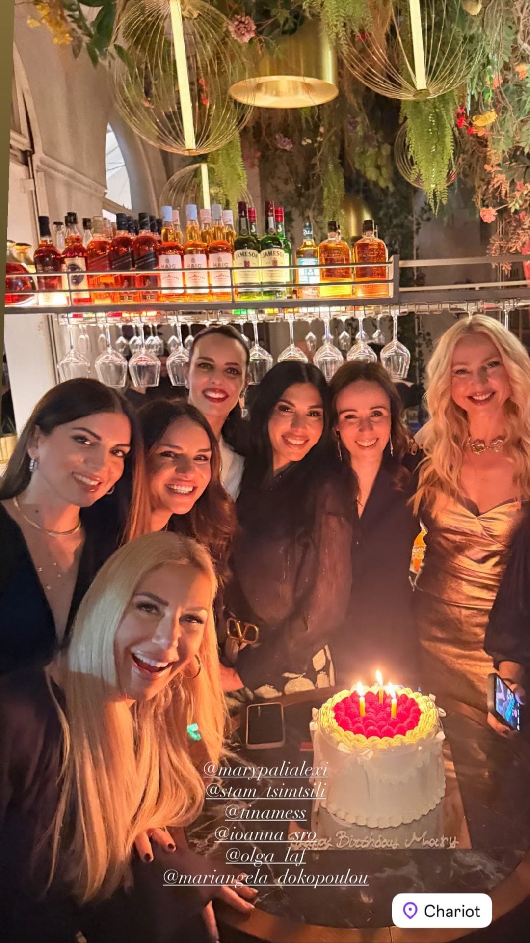 Η παρέα ξεκίνησε από ένα γνωστό στέκι της πόλης, με cocktails, χορό και καλή διάθεση, ενώ στη συνέχεια συνέχισε στο ΝΟΧ, όπου αυτή την περίοδο εμφανίζονται οι Μέλισσες και ο Αντώνης Ρέμος.