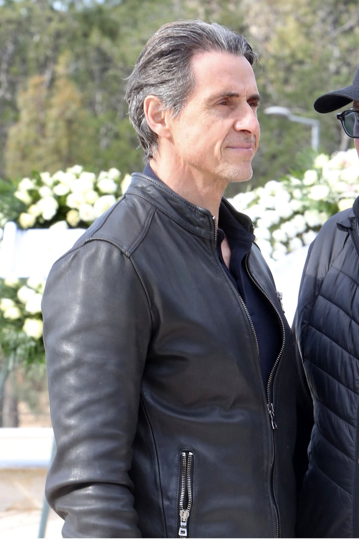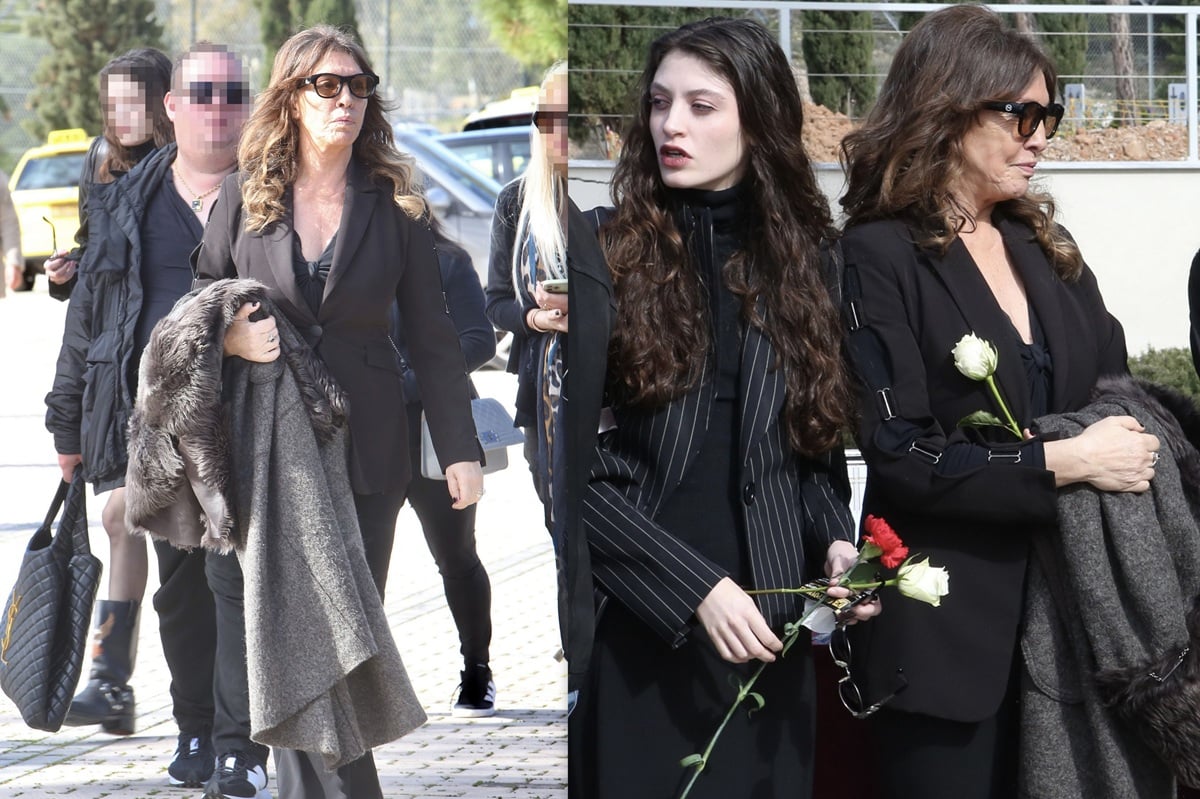 Η ηθοποιός ντυμένη στα μαύρα και συνοδευόμενη από την κόρη της, Φαίδρα πήγαν στο κοιμητήριο της Γλυφάδας για να τον αποχαιρετήσουν.