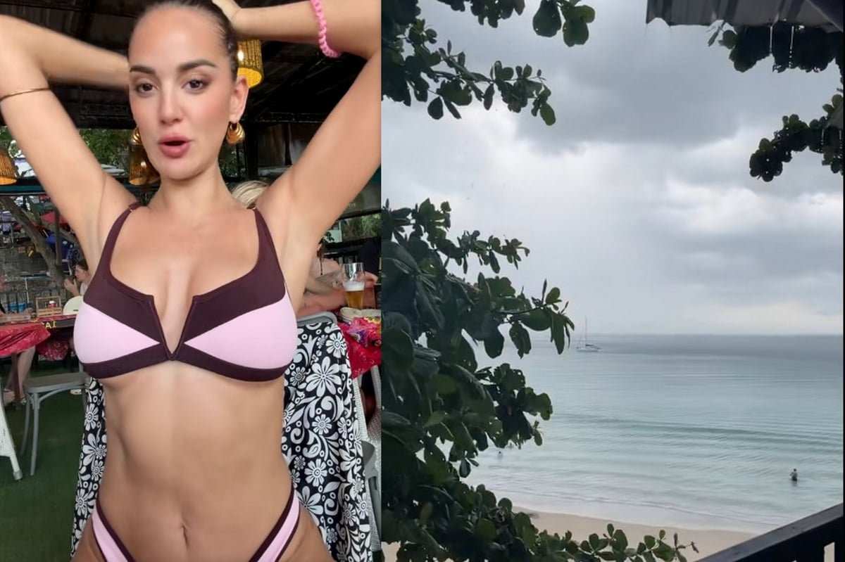 Η τραγουδίστρια μαζί με τον αγαπημένο της Δημήτρη Αλεξάνδρου βρίσκονται στην Ταϊλάνδη διακοπές και εκεί που έκαναν την βουτιά τους στη θάλασσα ξαφνικά έπιασε μπόρα και τους το χάλασε όπως μας ενημέρωσε η Ρία.