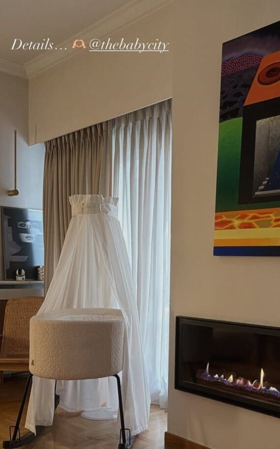 Παράλληλα, έχει τοποθετήσει και ένα λίκνο στο σαλόνι, ώστε να έχει τη μπέμπα κοντά της μέσα στη μέρα.