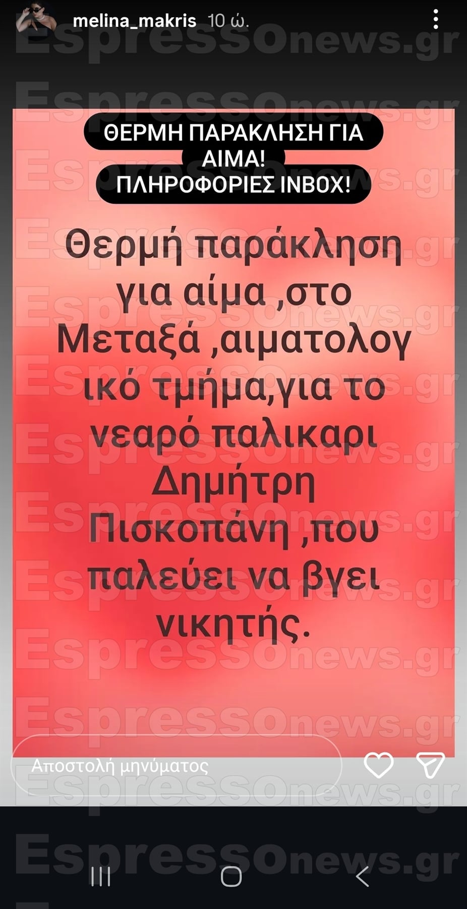 Η Μελίνα Μακρή με ένα ποστ της έκανε έκκληση για αίμα.
