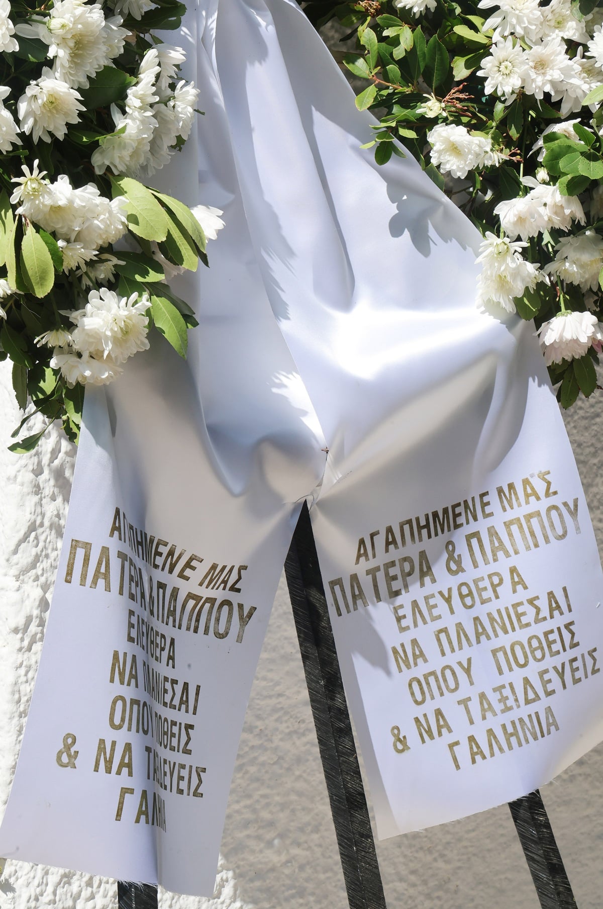 Το στεφάνι που έστειλαν τα παιδιά του έγραφε: «Αγαπημένε μας πατέρα και παππού ελεύθερα να πλανιέσαι όπου ποθείς και να ταξιδεύεις γαλήνια».