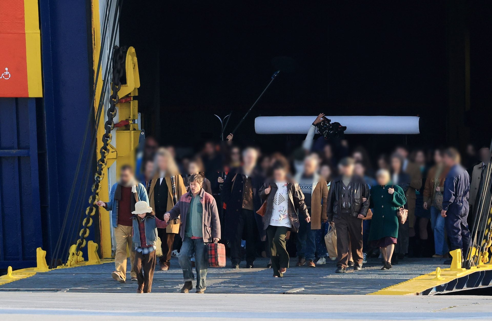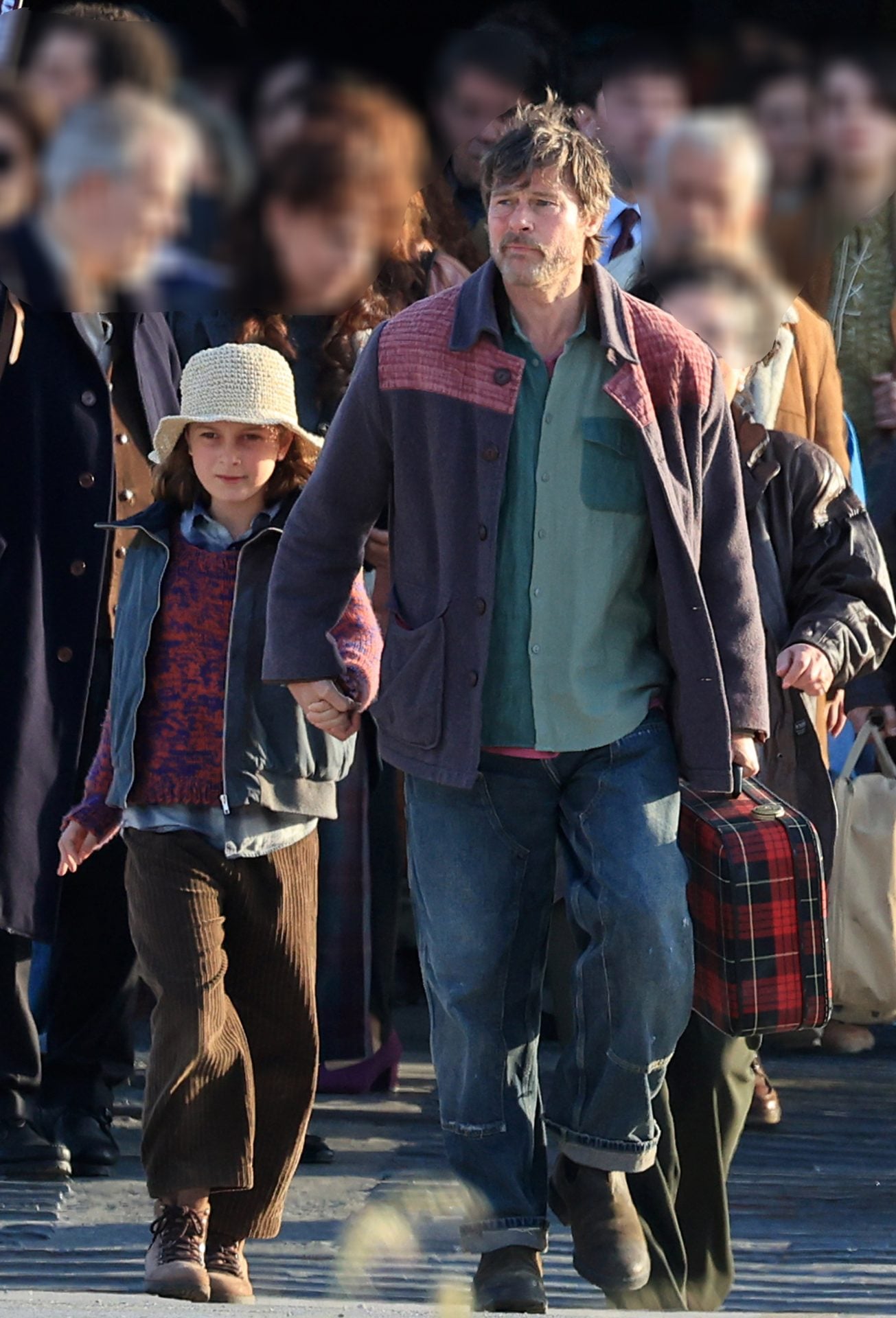 Ο Μπραντ Πιτ εμφανίστηκε στον καταπέλτη του πλοίου κρατώντας μία βαλίτσα και έχοντας στο πλευρό του τη νεαρή ηθοποιό που υποδύεται την κόρη του στην ταινία, ακολουθώντας τις οδηγίες του σκηνοθέτη μαζί με τους υπόλοιπους συντελεστές και τους κομπάρσους.