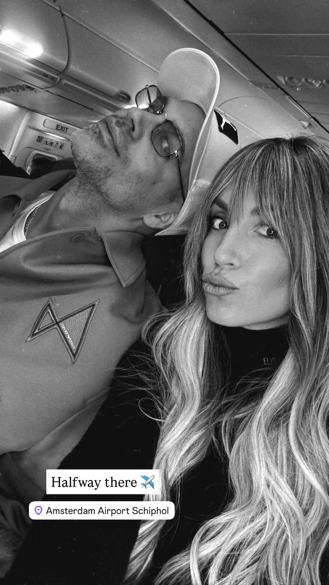 Σε ένα από τα stories που ανέβασε, η ηθοποιός ποζάρει δίπλα στον σύντροφό της μέσα στο αεροπλάνο, καταγράφοντας ένα κοινό τους στιγμιότυπο κατά τη διάρκεια της μετακίνησής τους. Στην εικόνα έγραψε τη φράση «Halfway there», ενημερώνοντας πως βρίσκονταν στο αεροδρόμιο Amsterdam Airport Schiphol και πως συνέχιζαν το ταξίδι τους προς τον τελικό προορισμό.