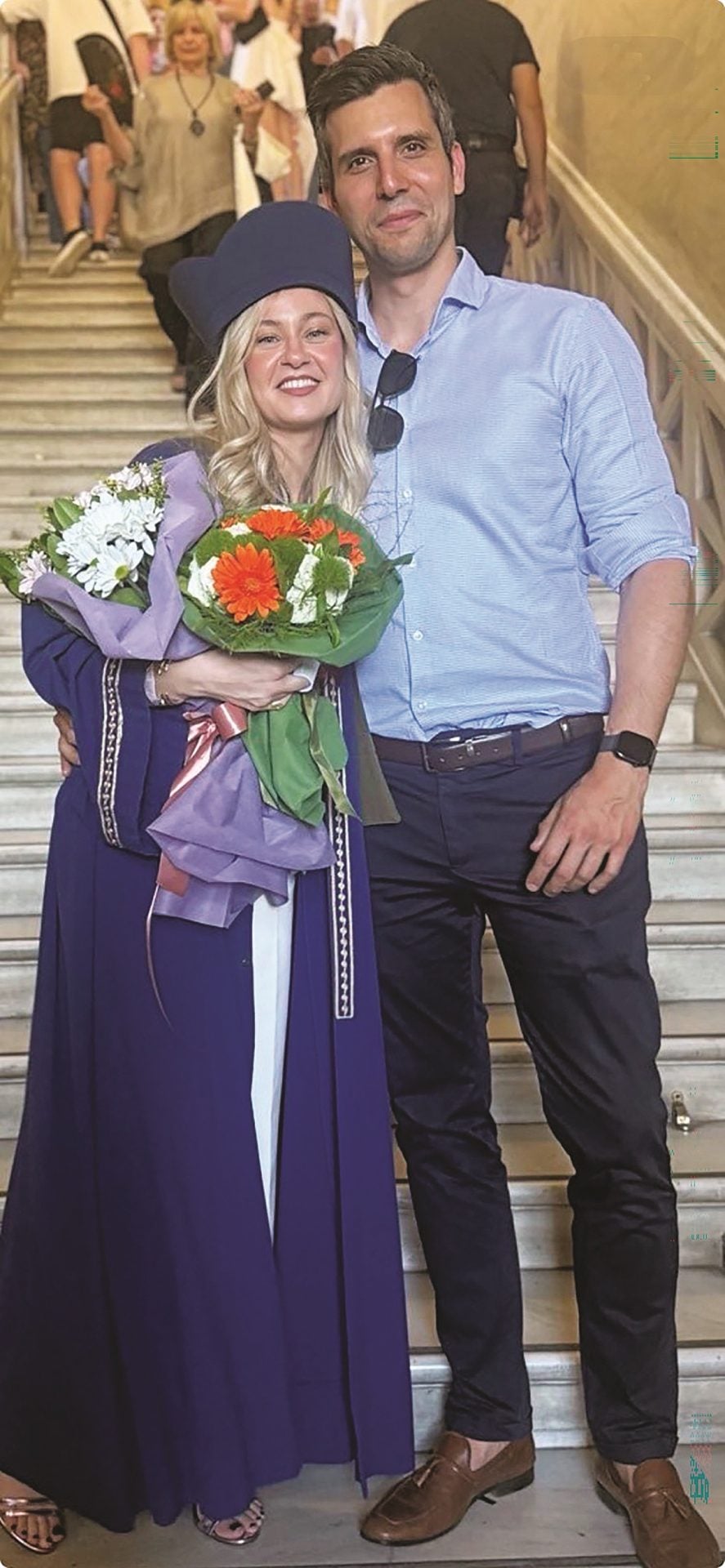 Η γοητευτική κοπέλα είναι αξιωματικός της Πολεμικής Αεροπορίας, ενώ έχει αποφοιτήσει και από το Παιδαγωγικό Τμήμα Δευτεροβάθμιας Εκπαίδευσης, καθώς έχει μεγάλη αδυναμία στα παιδιά. Κουμπάροι του ζευγαριού θα είναι δύο αγαπημένοι φίλοι του, ένας από το περιβάλλον του γαμπρού και ένας από το περιβάλλον της νύφης, ενώ θα ακολουθήσει δεξίωση σε παραθαλάσσιο κτήμα της Αττικής.