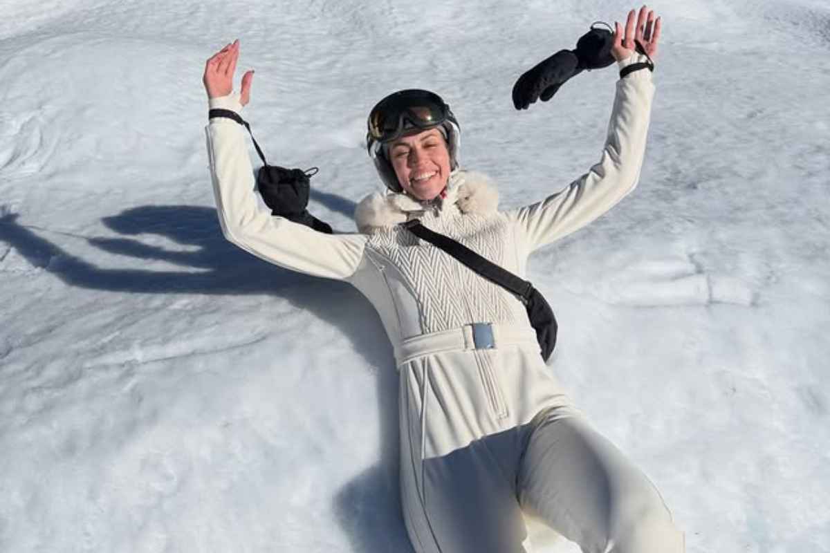Μα φυσικά σε ένα χιονοδρομικό κέντρο να απολαμβάνει τον καφέ της στον ήλιο!