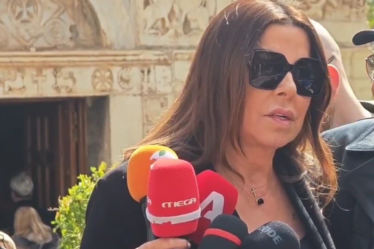 Η Άντζελα Δημητρίου ντυμένη στα μαύρα έφτασε στη Μητρόπολη Αθηνών για το τελευταίο αντίο στη Μαρινέλλα.
