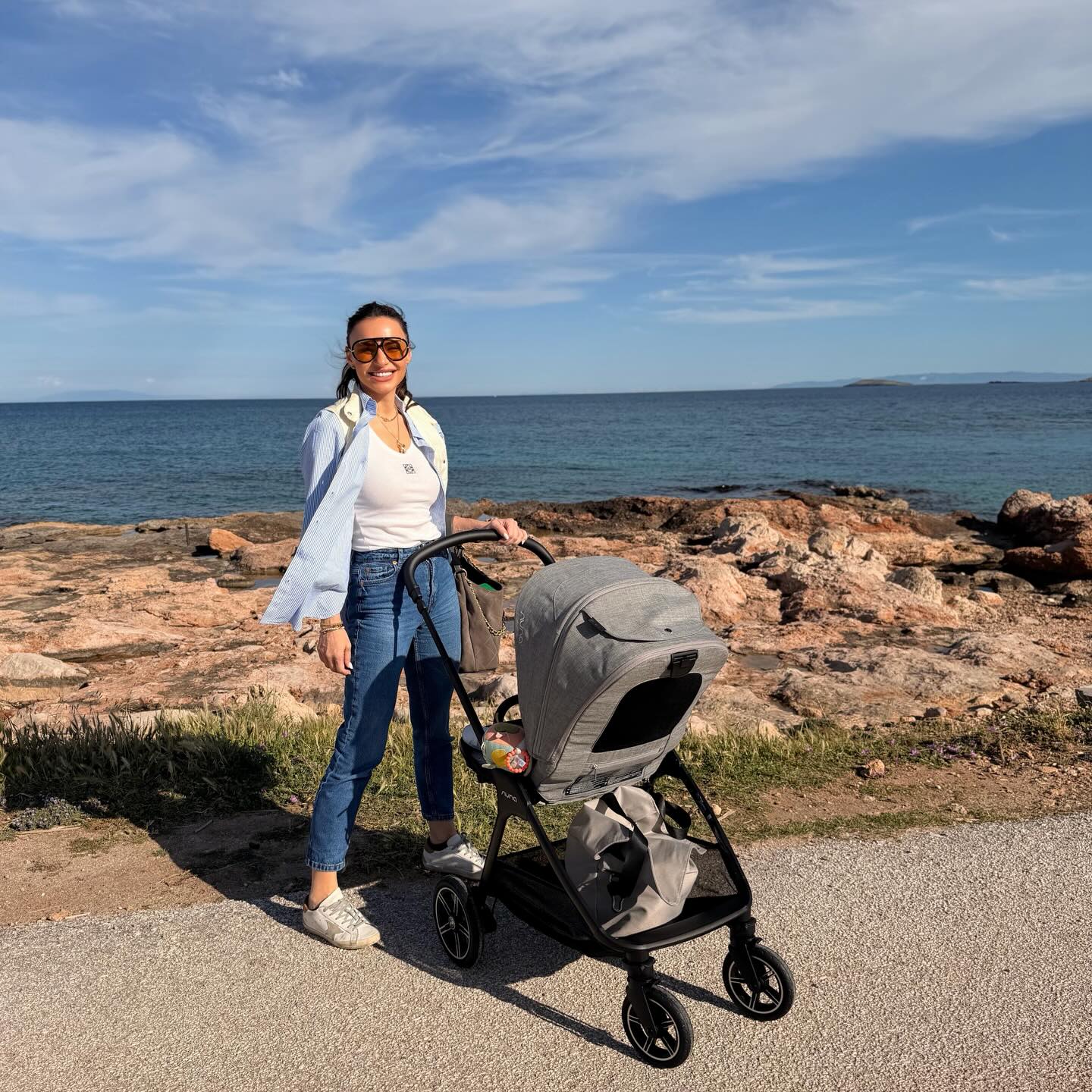 Η Ελένη Τσολάκη το μεσημέρι της Τρίτης με αφορμή τον καλό καιρό πήγε για φαγητό στη θάλασσα έχοντας μαζί την κορούλα της που πρόσφατα έγινε ενός έτους.