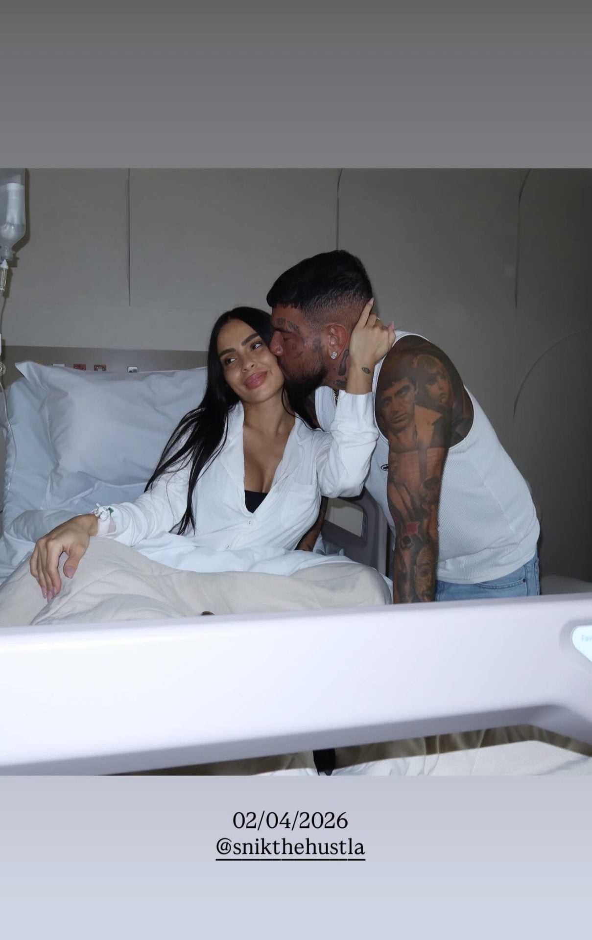 Στις φωτογραφίες βλέπουμε το νεογέννητο μωρό, αλλά και τρυφερές οικογενειακές στιγμές, με ένα story να ξεχωρίζει: ο Snik τη φιλά στο μάγουλο, σε ένα αυθόρμητο στιγμιότυπο.