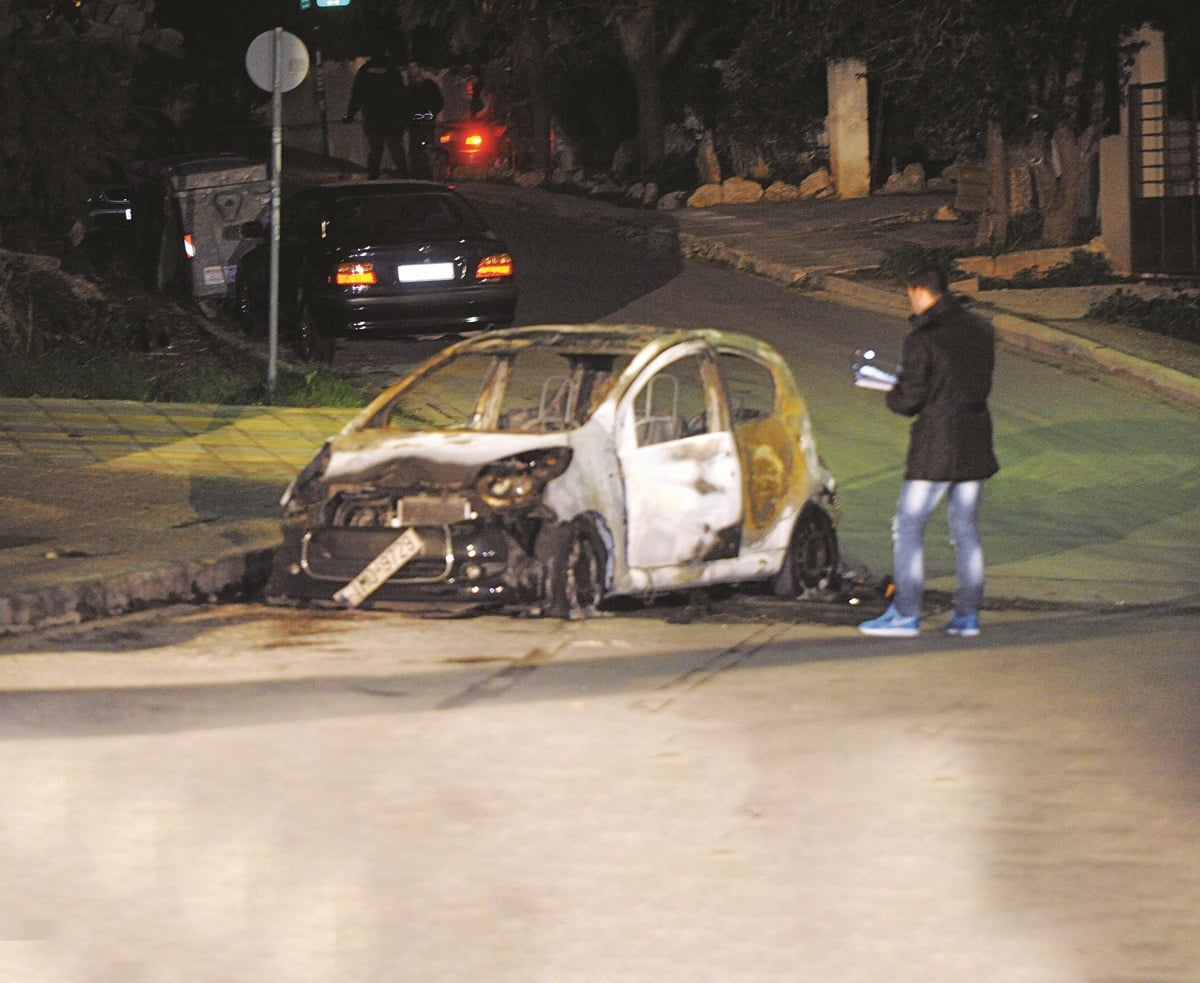 Το αυτοκίνητο των απαγωγέν που κάηκε μετά την πρόσκρουση