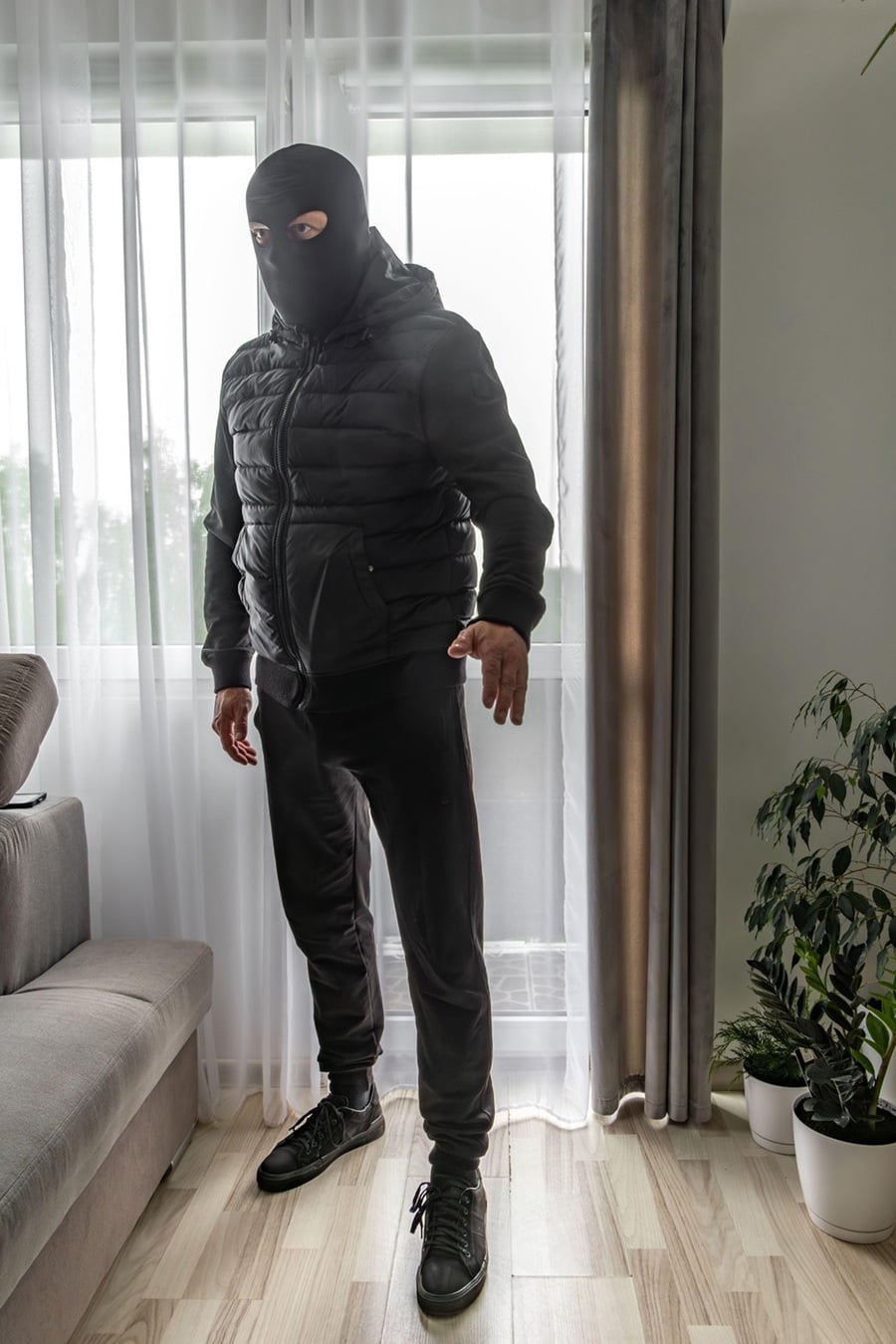 Κινήθηκαν, όμως, προς τα πίσω, πεζοί, από την οδό Δημελά προς την οδό Αγίας Τριάδος. Οι αστυνομικοί της Ομάδας ΔΙΑΣ, που κατέφθασαν στις 19.55, τους εντόπισαν και ζήτησαν να τους ελέγξουν. Οι κουκουλοφόροι δεν συμμορφώθηκαν στις υποδείξεις και απείλησαν τους αστυνομικούς με αεροβόλο πιστόλι, μαχαίρι και σφυρί, αντίστοιχα. Παράλληλα επιχείρησαν να διαφύγουν, αλλά ακινητοποιήθηκαν από τους αστυνομικούς. Πάνω τους κατασχέθηκαν, εκτός από τον οπλισμό και ρουχισμό, τέσσερα κινητά τηλέφωνα, μία συσκευή γεωεντοπισμού (GPS) και 1.000 ευρώ. Την επόμενη ημέρα, το Σάββατο, οι αστυνομικοί, παρουσία εισαγγελέα, πραγματοποίησαν έρευνα σε διαμέρισμα βραχυχρόνιας μίσθωσης στην οδό Αγίου Δημητρίου Οπλων στην Αθήνα, όπου έμεναν προσωρινά οι κατηγορούμενοι, χωρίς να εντοπιστεί κάτι σχετικό με την υπόθεση. Τόσο ο 37χρονος Ουκρανός όσο και οι Λιθουανοί, 36 και 32 ετών, είναι «φακελωμένοι» στις χώρες τους για ληστείες, κλοπές και ναρκωτικά.