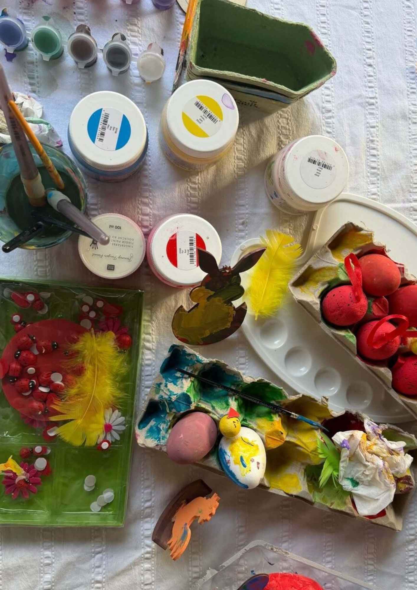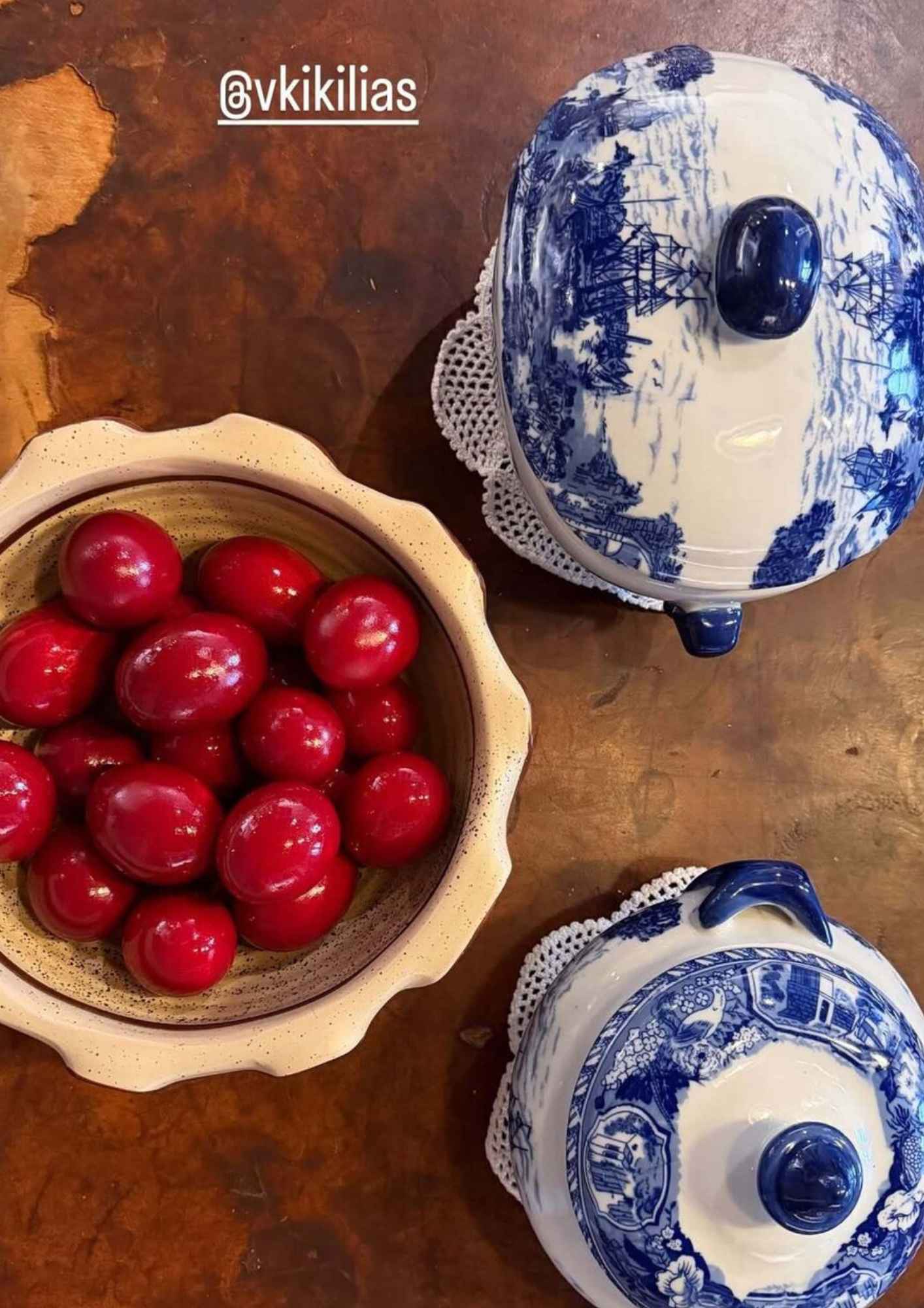 Ιδιαίτερο ενδιαφέρον παρουσιάζουν και οι λεπτομέρειες από το εσωτερικό του παραδοσιακού σπιτιού της, όπου ξεχωρίζουν τα βαμμένα αβγά πάνω στο παλιό τραπέζι, δίπλα σε αγγλικές vintage πορσελάνες.