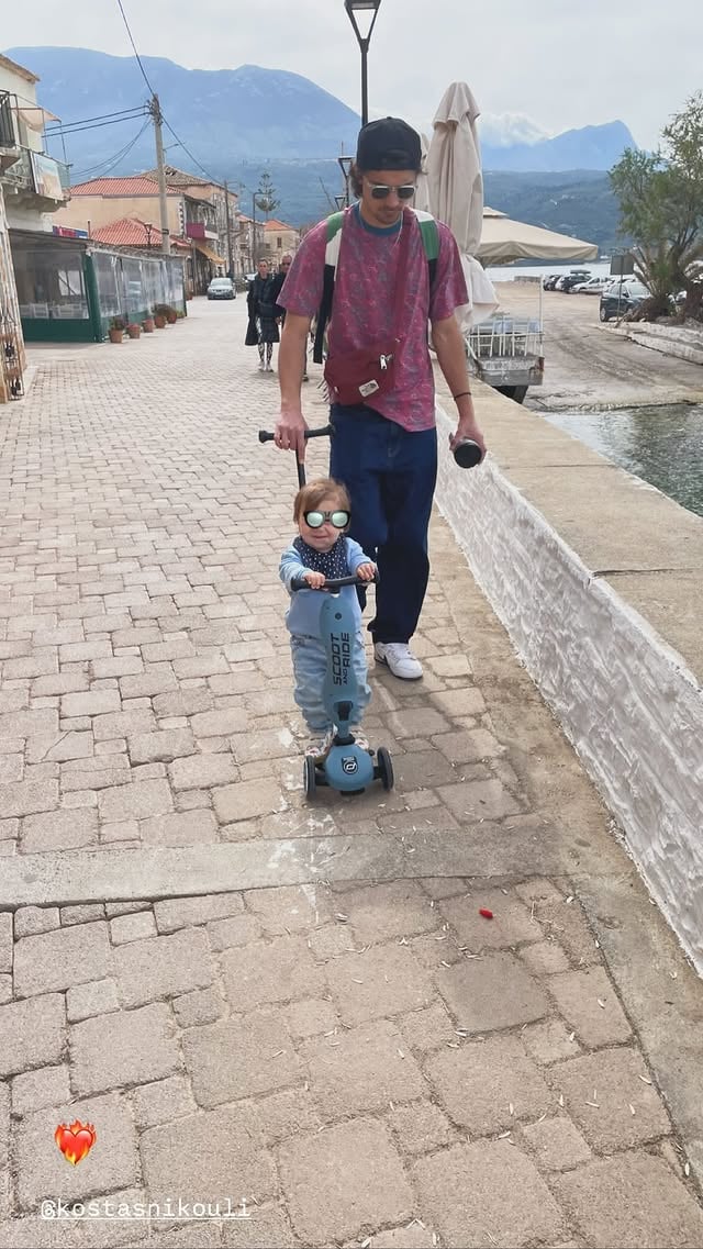 Η ηθοποιός απαθανάτισε μπαμπά και γιο κατά την έξοδό τους σε κάποιο νησί. Ο Κώστας Νικούλι μοντέρνα ντυμένος έκανε βόλτες τον μικρό με το πατίνι του. «Είναι πολύ ωραία εμπειρία η πατρότητα. Νομίζω είμαι ερωτευμένος.
