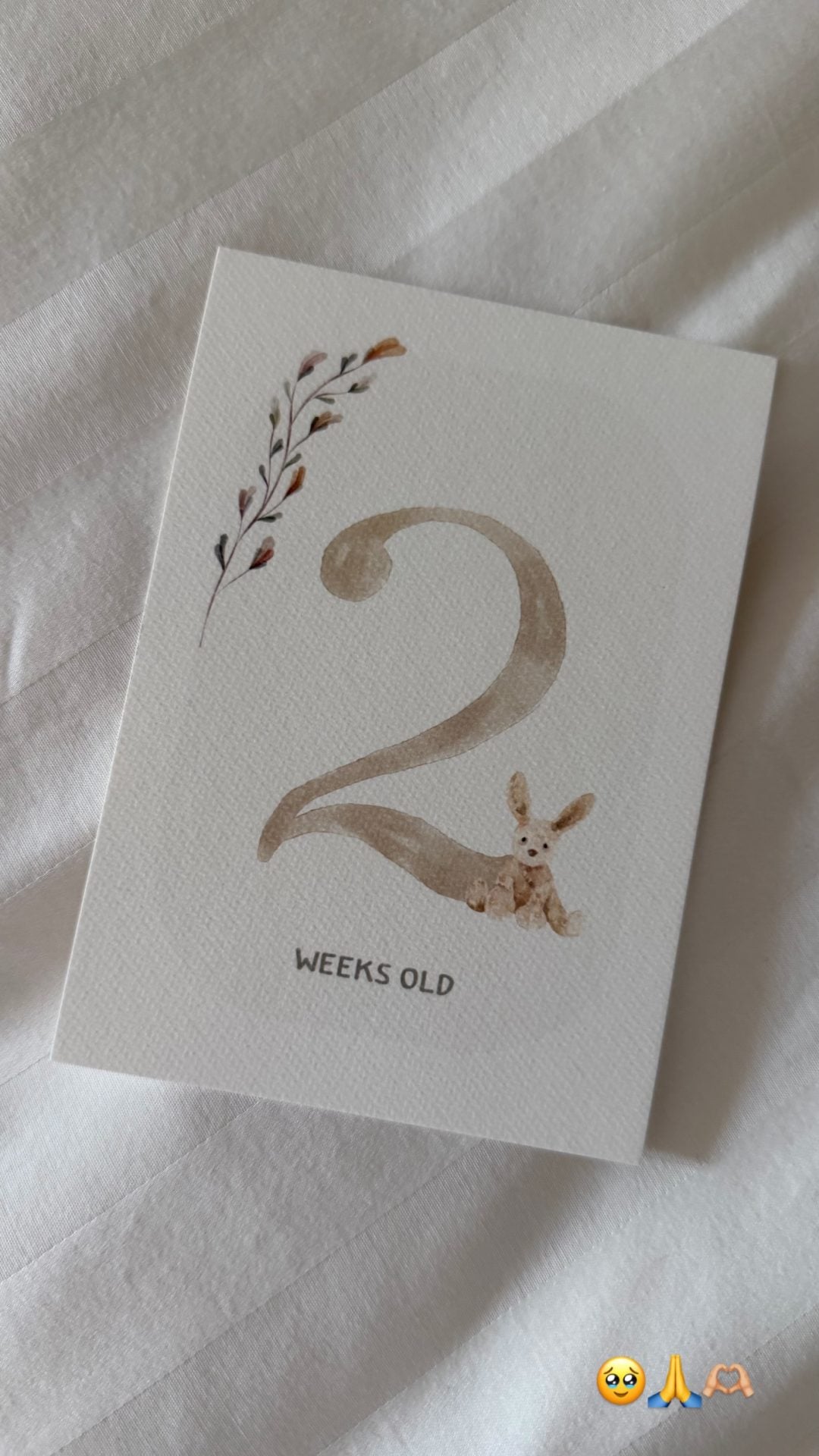Η μικρή Ξένια, που γεννήθηκε την Παρασκευή 3 Απριλίου συμπλήρωσε σήμερα δύο εβδομάδες ζωής. Η παρουσιάστρια έκανε την επανεμφάνισή της στα social media το μεσημέρι της Παρασκευής 17 Απριλίου, δημοσιεύοντας ένα λιτό αλλά γεμάτο συναίσθημα στιγμιότυπο: μια κάρτα που έγραφε «2 εβδομάδων» στα αγγλικά, συνοδευόμενη από emoji συγκίνησης.