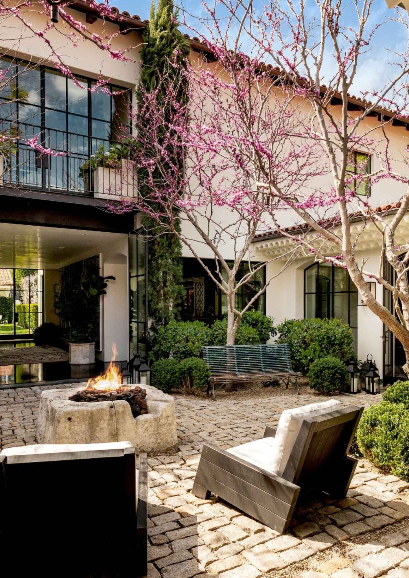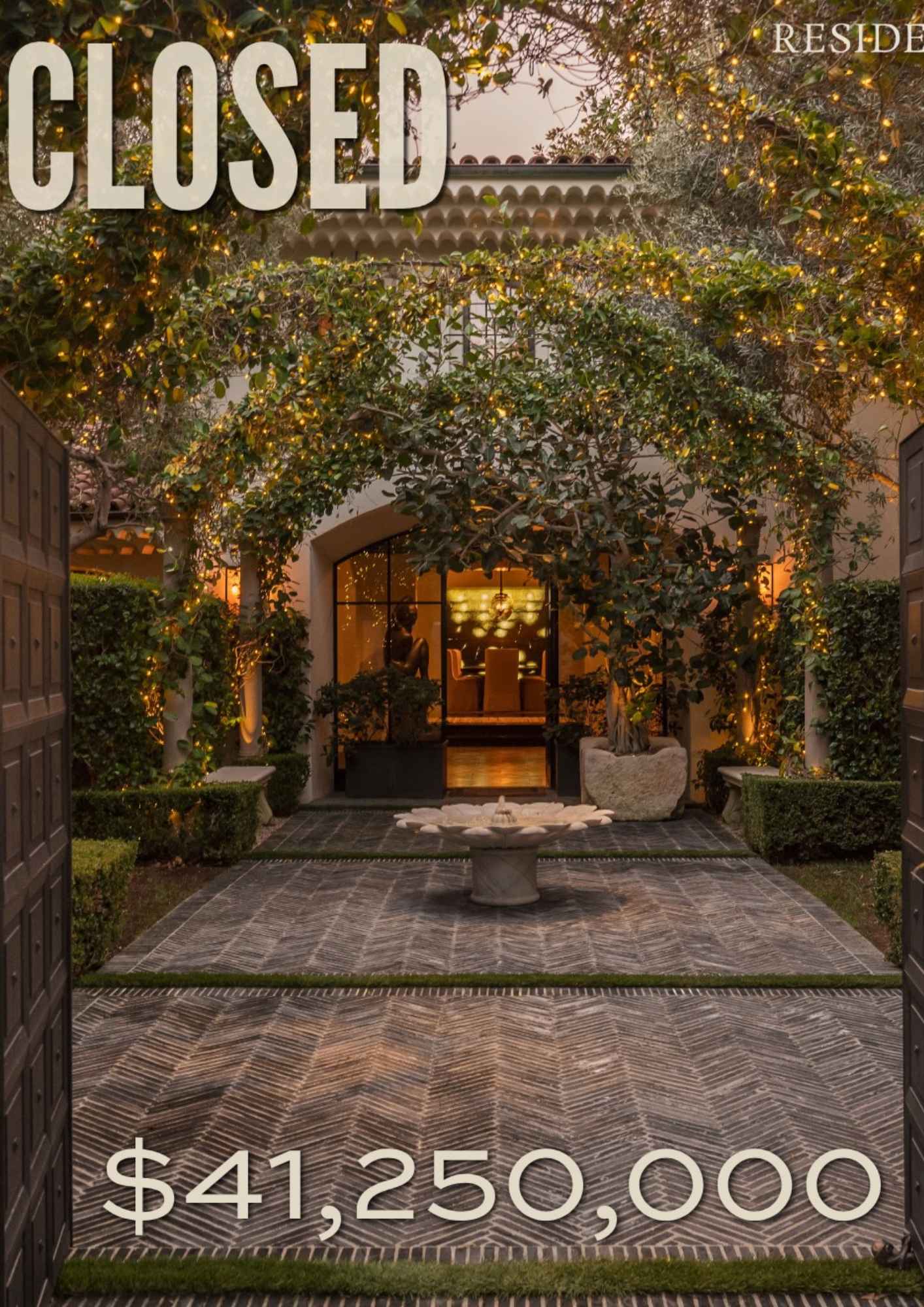 Η έπαυλη, που συνδυάζει μεσογειακή αισθητική με ιστορία που ξεκινά από το 1928, διαθέτει πολυτελείς εσωτερικούς χώρους, όπως επτά υπνοδωμάτια, δέκα μπάνια, σαλόνια υποδοχής, ιδιωτική κάβα και αίθουσα προβολών. Στο εξωτερικό της ξεχωρίζουν το γήπεδο τένις, η πισίνα και η αυλή με το σιντριβάνι.