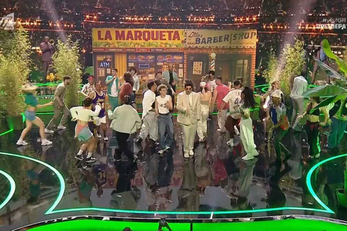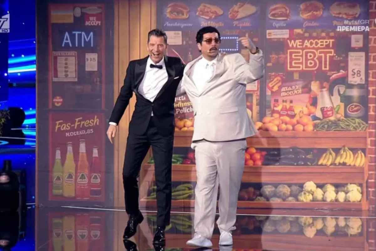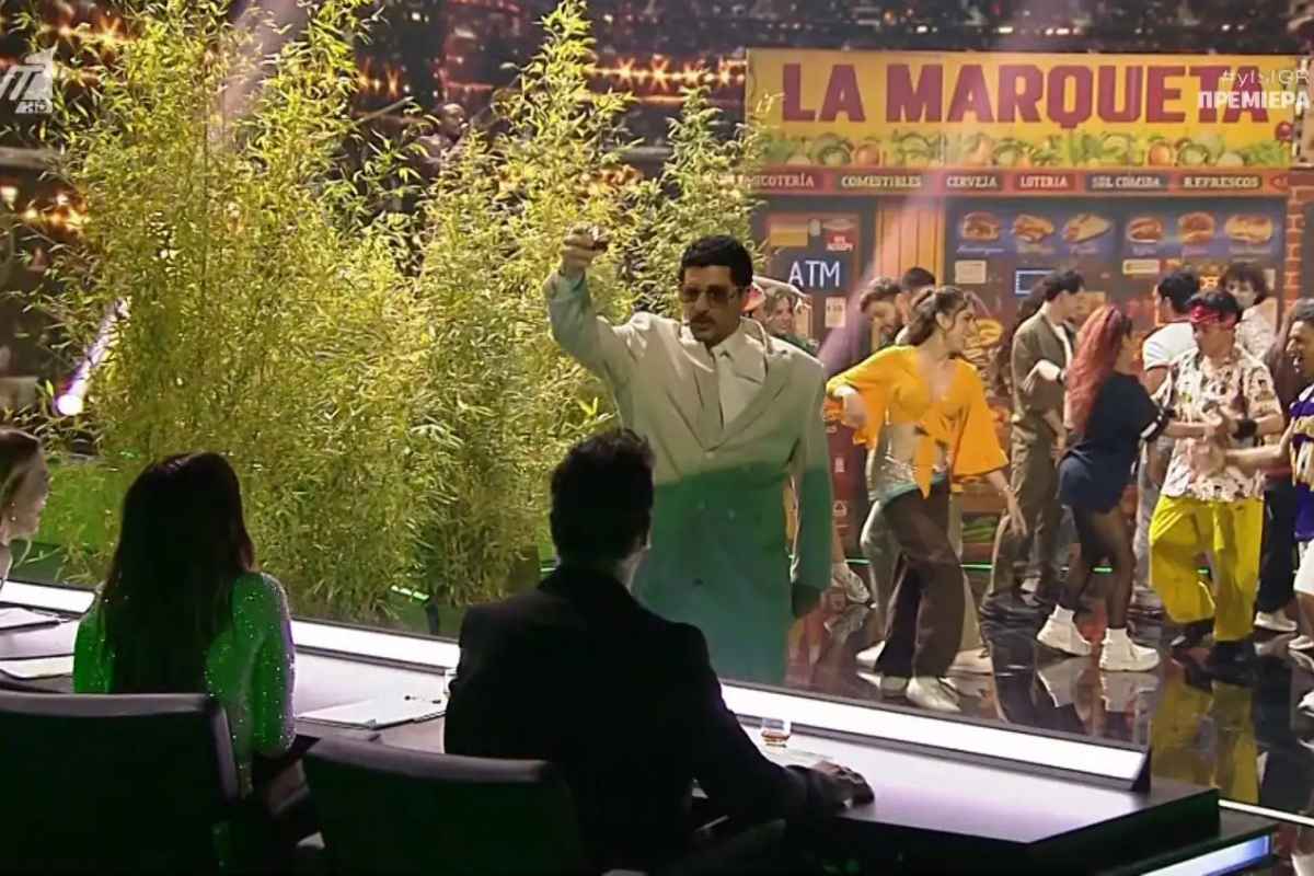 Ο Ρένος Χαραλαμπίδης, η Ρένα Μόρφη, η Κατερίνα Παπουτσάκη και ο Γιώργος Θεοφάνους έδειξαν να απολαμβάνουν ιδιαίτερα το act, ξεσηκωμένοι από το τραγούδι του Bad Bunny που ερμήνευσε ο ηθοποιός στη σκηνή.