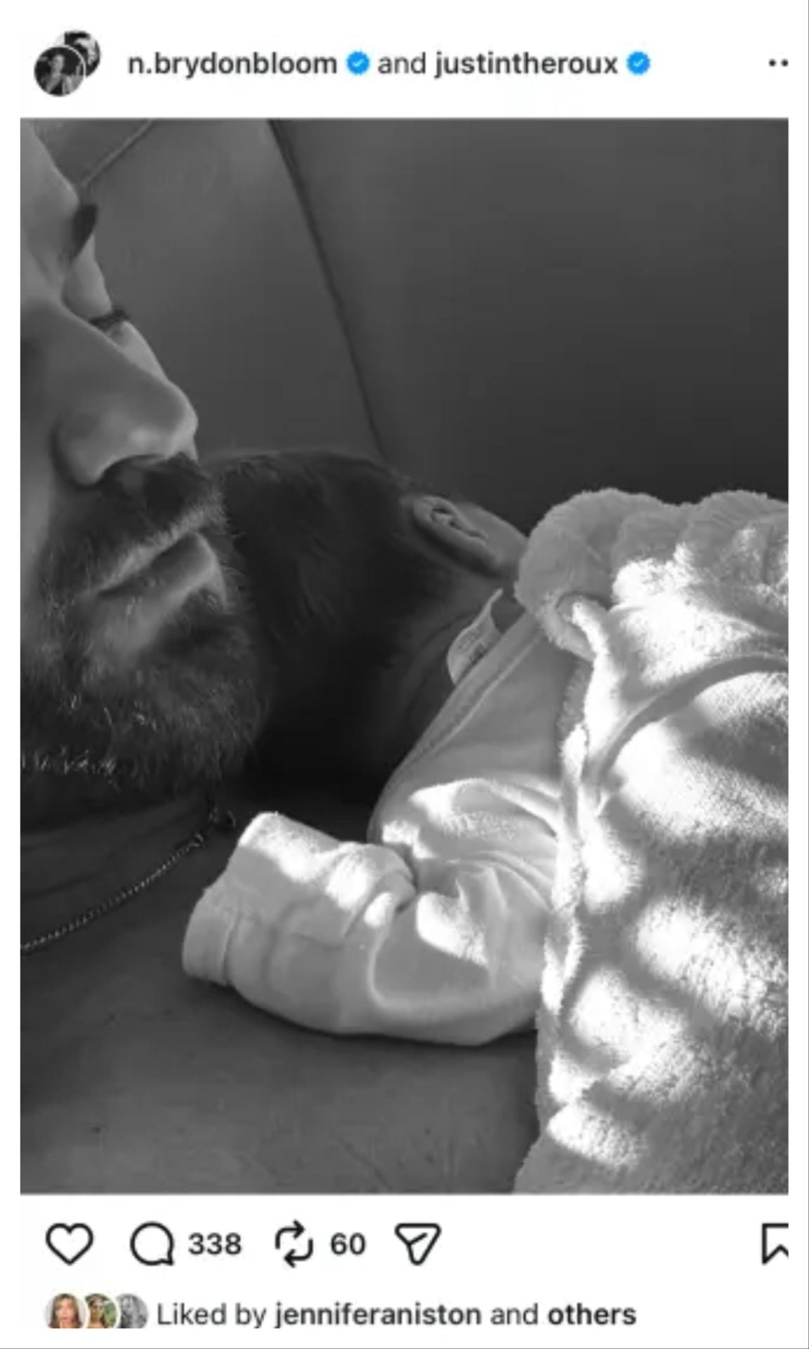 Με έναν διακριτικό επέλεξε να αντιδράσει η Τζένιφερ Άνιστον, μετά τις τελευταίες εξελίξεις στην προσωπική ζωή, του πρώην συζύγου της, Τζάστιν Θέρου, ο οποίος έγινε για πρώτη φορά πατέρας με την σύζυγό του, Νικόλ Μπράιντον Μπλουμ.