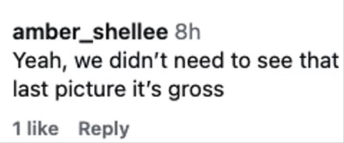Σχόλια όπως: «Δεν χρειαζόταν να δούμε την τελευταία φωτογραφία»,«Αηδία», «Ήταν απαραίτητη αυτή η εικόνα;» και «Απλά… υπερβολικό» κατέκλυσαν την ανάρτηση, με αρκετούς followers να εκφράζουν την ενόχλησή τους.