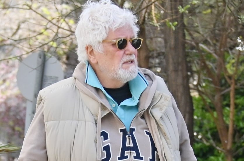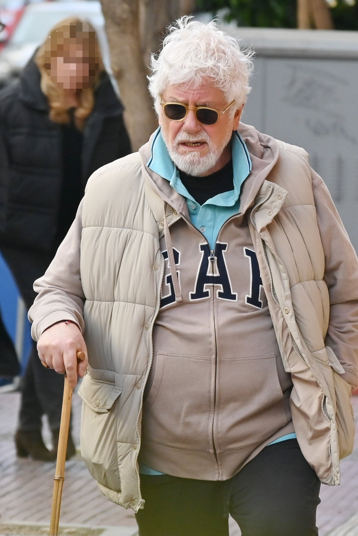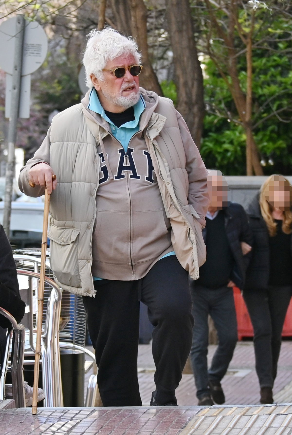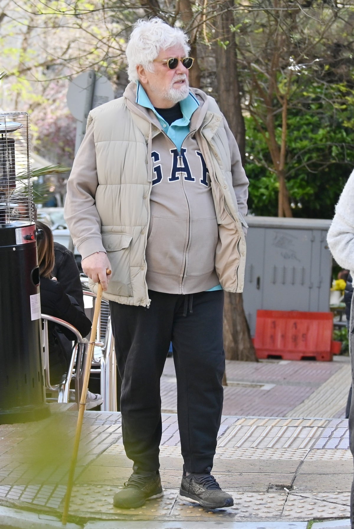 Ο φωτογραφικός μας φακός τον εντόπισε να κάνει τη βόλτα του στο Κολωνάκι κρατώντας μπαστούνι για να τον διευκολύνει στο περπάτημα.