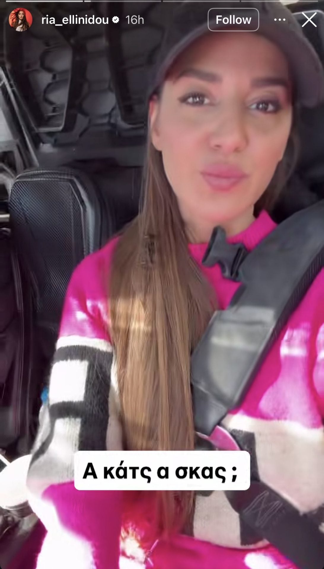 Νωρίτερα, η Ρία Ελληνίδου είχε δημοσιεύσει επίσης story στον δικό της λογαριασμό, στο οποίο φαίνεται ο Δημήτρης Αλεξάνδρου να οδηγεί, ενώ στη συνέχεια κατέγραψε στιγμιότυπα από τη διαδρομή τους στο βουνό, γράφοντας: «Α κατς να σκας;».