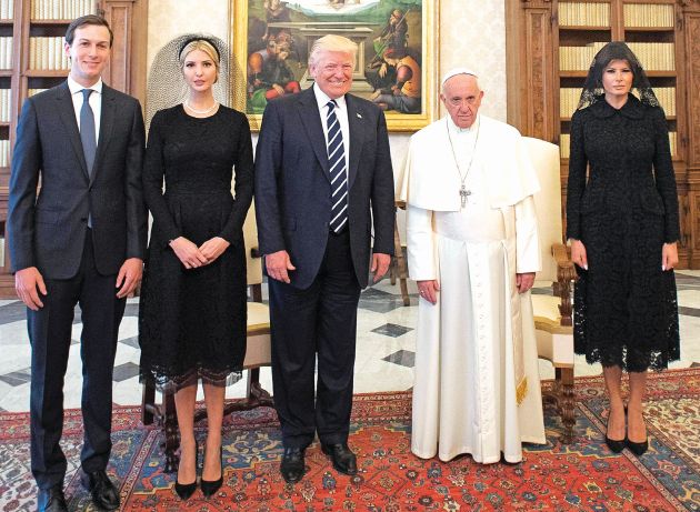 Η Μελάνια και η Ιβάνκα, αντίθετα με ό,τι είχαν κάνει στη Σαουδική Αραβία, σεβάστηκαν απολύτως το dress code που επιβάλλει η επίσκεψη στον Ποντίφικα. Μαύρα μαντίλια, μαύρα μακριά φορέματα και χαμηλωμένα βλέμματα που παρέπεμπαν σε θλιμμένες χήρες. Αυτό το στιλ έβαλε φωτιά στο twitter με σχόλια όπως «να είσαι ντυμένη σαν χήρα χωρίς τα οφέλη».