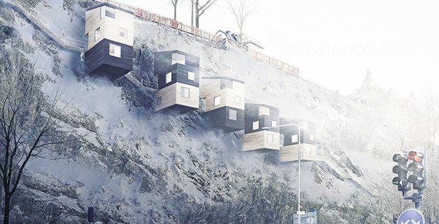 «Δεν χρειάζεται εμείς οι άνθρωποι να οικοδομούμε κατ’ ανάγκη στο έδαφος – μπορούμε να μάθουμε από τα ζώα και τα πτηνά, που χτίζουν τις φωλιές τους σε δέντρα, σε ρωγμές βράχων, πάνω από το έδαφος… …Μπορούμε κι εμείς να οικοδομήσουμε τα σπίτια μας πάνω από το σπάνιο και ακριβό έδαφος» σκέφτηκαν οι Σουηδοί αρχιτέκτονες Ελιζαμπέτα Γκαμπριέλι και Πόντους Ολμαν και οι συνεργάτες τους, και εμπνεύστηκαν τα NestinBox, τα σπίτια-αετοφωλιές!