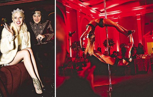 Μετά την ολοκλήρωση της τελετής το ζευγάρι πέρασε κάτω από σπαθιά που κρατούσαν οι κουμπάροι τους, με την Κάθριν να φοράει εντυπωσιακή κορόνα. Η διακόσμηση του χώρου όπου διοργανώθηκε το γαμήλιο δείπνο για τους 300 καλεσμένους τους ήταν εμπνευσμένη από τις ταινίες «Το φάντασμα της όπερας» και «Η Πεντάμορφη και το Τέρας», ενώ η γαμήλια τούρτα έμοιαζε με το κάστρο του Δράκουλα και pole dancers ανέλαβαν να διασκεδάσουν τους παρευρισκόμενους.