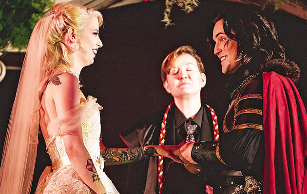 Η «βασίλισσα» και ο «βασιλιάς» των βαμπίρ του Τέξας αντάλλαξαν όρκους αιώνιας πίστης σε γαμήλια τελετή που δεν θα μπορούσε παρά να είναι εμπνευσμένη από την ιστορία του Κόμη Δράκουλα.
