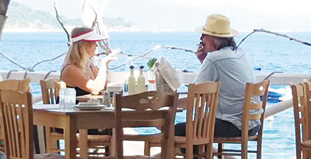 Οι δύο καλλιτέχνες, οι οποίοι έχουν αναπτύξει φιλικές σχέσεις με τους κατοίκους του νησιού, επιλέγουν διάφορες παραλίες της Σκιάθου για να απολαύσουν το μπάνιο τους, ενώ προτιμούν να δειπνούν σε παραδοσιακά ταβερνάκια, με έντονο ελληνικό χρώμα, δίπλα στο κύμα.