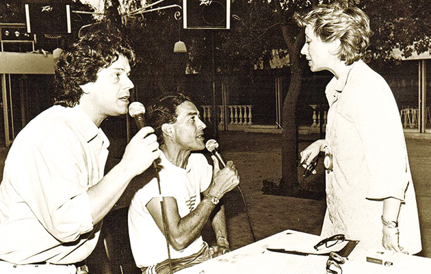 Ναι, μάλλον ήμουν τυχερός. Iσως να βοήθησε και το ότι μιλούσα πολλές γλώσσες -αγγλικά γαλλικά, ιταλικά, ισπανικά, αραβικά- και μπορούσα να τραγουδήσω διεθνές ρεπερτόριο. Γι’ αυτό και οι πρώτοι μου δίσκοι με την τότε Οντεόν ήταν γνωστά γαλλικά και αγγλικά τραγούδια. Πάντως τον πρώτο καιρό τα τραγούδια μου δεν παίζονταν στο ραδιόφωνο, γιατί δεν είχα πάρει από την τότε ΕΙΡ το χρίσμα του τραγουδιστή. Εδινα εξετάσεις και με έκοβαν γιατί κάποιος από τους κριτές, που βρίσκονταν πίσω από το καλυμμένο με κουρτίνα τζάμι του στούντιο στο Ζάππειο, πίστευε πως είχα ξενική άρθρωση. Είχα απελπιστεί. «Μη στενοχωριέσαι, νεαρέ μου, η Μούσχουρη πέρασε με την πέμπτη φορά και η Βάνου με την τρίτη» μου είπε μια κυρία στη γραμματεία και μου έδωσε κουράγιο. Τελικά, πέρασα κι εγώ με την τρίτη φορά.