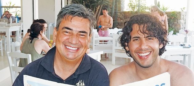 Ο φακός της «Espresso» τον εντόπισε στη μυκονιάτικη παραλία Λια, να τρώει στο εστιατόριο liasti με φίλο του, τον επιχειρηματία Κώστα Μαστοράκη, ο οποίος τον προσκάλεσε και στη Formula 1 τον Σεπτέμβριο στη Μόντσα της Ιταλίας.