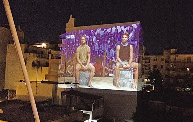 Εστησαν προτζέκτορα σε τοίχο πολυκατοικίας στον Βόλο