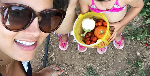 Η Σταματίνα πόζαρε παρέα με τις κόρες της Νάγια και Μαίρη, οι οποίες φορούσαν το μαγιό τους και τα σαγιοναράκια τους, κρατώντας ένα καλάθι με καλούδια. «Το καλύτερο μποστάνι είναι του φίλου σου» έγραψε στη φωτογραφία στο Instagram η Τσιμτσιλή.