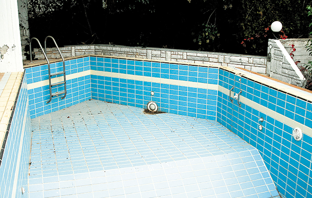 Οι λογαριασμοί της ΔΕΗ στοιβάζονται στην εξώπορτα, τα ξύλινα παράθυρα με τη μαγευτική θέα προς τη θάλασσα έχουν φθαρεί, όπως και οι τοίχοι απ’ όλες τις πλευρές της βίλας, ενώ οι εξωτερικοί χώροι γύρω από την πισίνα θυμίζουν βομβαρδισμένο τοπίο και πολλά από τα άλλοτε καταπράσινα φυτά και τα δέντρα του κήπου έχουν ξεραθεί…