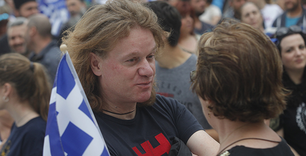❱❱ Στη διαδήλωση στο Σύνταγμα κατά της συμφωνίας για το ονοματολογικό με την ΠΓΔΜ, που σημαδεύτηκε από σοβαρά επεισόδια, συμμετείχαν και γνωστοί καλλιτέχνες όπως ο τραγουδιστής Πέτρος Γαϊτάνος.