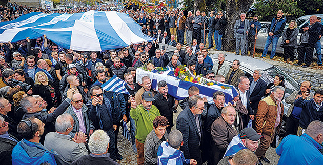 Σε κλίμα βαθιάς οδύνης και συγκίνησης, που δημιουργούσαν οι οιμωγές των συγγενών του αδικοχαμένου παλικαριού και οι συντονισμένες φωνές 3.000 ομογενών, οι οποίοι ταξίδεψαν από κάθε γωνιά της Ελλάδας για να παρευρεθούν στην κηδεία, η γη της Βορείου Ηπείρου άνοιξε χθες το μεσημέρι την αγκαλιά της και δέχθηκε το άψυχο σώμα του 35χρονου ήρωα. Η λαοθάλασσα που ακολουθούσε έψαλλε τον Εθνικό Υμνο φωνάζοντας «Αθάνατος», ενώ η πλατεία του χωριού είχε πλημμυρίσει από ελληνικές σημαίες.