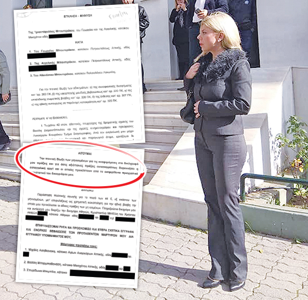 «Γνωρίζω ότι την 24/10/2016 τόσο η μητέρα μου, δεύτερη μηνυόμενη, όσο και ο εξάδελφός μου έδωσαν δύο ένορκες καταθέσεις ενώπιον του Αστυνομικού Τμήματος Λακωνίας, το ακριβές περιεχόμενο όμως των οποίων δεν έχω καταφέρει να μάθω μέχρι σήμερα… Κατόπιν τούτου παραπέμφθηκα στο Ψυχιατρικό Νοσοκομείο του Δρομοκαΐτειου, όπου τόσο η μητέρα μου, ο πατέρας μου όσο και ο ξάδελφός μου, όπως προκύπτει από την 24/10/2016 ιατρική γνωμάτευση και ιατρικό ιστορικό ανέφεραν όλως ψευδώς και συκοφαντικώς στους ιατρούς αναληθή περιστατικά τα οποία έπαιξαν θεμελιώδη ρόλο στην απόφαση του εγκλεισμού μου» αναφέρει στην πολυσέλιδη μήνυσή της η ηθοποιός, ενώ μιλάει και για την απόδρασή της από αυτό που είχε προκαλέσει πανελλήνιο σάλο: «Την 25η Οκτωβρίου του 2016, λόγω του νοσηρού κλίματος που επικρατούσε στο εν λόγω νοσοκομείο, φοβούμενη την τρώση της σωματικής μου ακεραιότητας από άλλους νοσηλευόμενους από ακούσιους εγκλεισμούς λόγω βαριών ψυχικών νόσων, αποχώρησα από το Δρομοκαΐτειο αυτοβούλως, ζητώντας τη βοήθεια του αρραβωνιαστικού μου και φιλικών μου προσώπων, οι οποίοι με γνωρίζουν από εικοσαετίας».