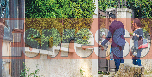 Το αυτοκίνητο του όμορφου ζευγαριού σταθμεύει ακριβώς έξω από την είσοδο του σπιτιού και ο… ιππότης Κωνσταντίνος Κατσανέβας ανοίγει την πόρτα στην αγαπημένη του για να κατέβει. Ο ακροβολισμένος φωτογράφος «αιχμαλωτίζει» το ζευγάρι που εδώ και λίγους μήνες χτυπήθηκε από τα βέλη του έρωτα. Ο Κωνσταντίνος ανοίγει την εξώπορτα, όπου δεσπόζει η προτομή του Γέρου της Δημοκρατίας.