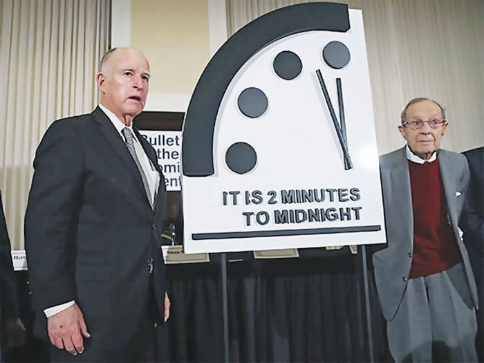 «Ο χρόνος που χωρίζει τον κόσμο από την καταστροφή εκφράζεται πλέον σε δευτερόλεπτα, όχι σε ώρες ή λεπτά» δήλωσε η Ρέιτσελ Μπρόνσον, πρόεδρος και γενική διευθύντρια του περιοδικού «Bulletin of Atomic Scientists», κατά τη διάρκεια συνέντευξης Τύπου στην Ουάσινγκτον που παραχωρεί κάθε χρόνο, τον Ιανουάριο.