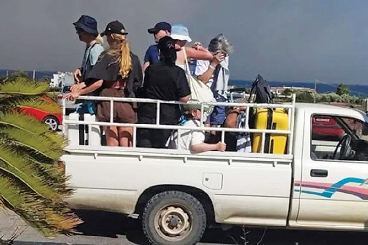 Νωρίτερα ο ίδιος είχε στηλιτεύσει τις εικόνες των τουριστών που απομακρύνονταν από τις φλόγες ακόμα και σε καρότσες. «Ανεξέλεγκτη η πυρκαγιά στη Ρόδο. Διεθνώς ρεζίλι! Εκκενώσεις μέσω του 112 Greece της ΓΓΠΠ των τουριστών και λοιπών επισκεπτών και κατοίκων από τις απειλούμενες περιοχές χωρίς το επιβαλλόμενο από το θεσμικό πλαίσιο ειδικό σχέδιο οργανωμένης απομάκρυνσης. Χαρακτηριστική η εικόνα!» έγραψε ο αντιστράτηγος ε.α. Για τη μετακίνηση χιλιάδων κατοίκων και τουριστών, σχολίασε: «Η μετακίνηση των 19.000 ατόμων, όπως αναφέρεται στο πιο κάτω δημοσίευμα, χωρίς ειδικό προς τούτο σχέδιο, δεν εντάσσεται στην έννοια του οικείου θεσμού και δεν θεωρείται κατά νόμο οργανωμένη προληπτική απομάκρυνση πολιτών εξαιτίας απειλούμενου ή εξελισσόμενου κινδύνου».