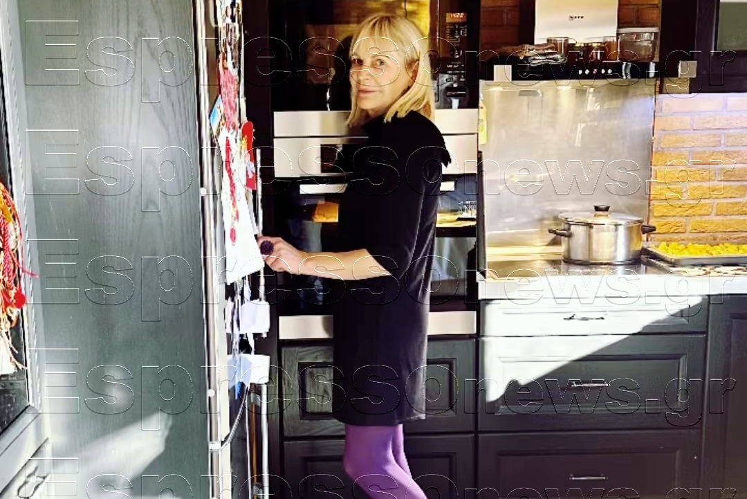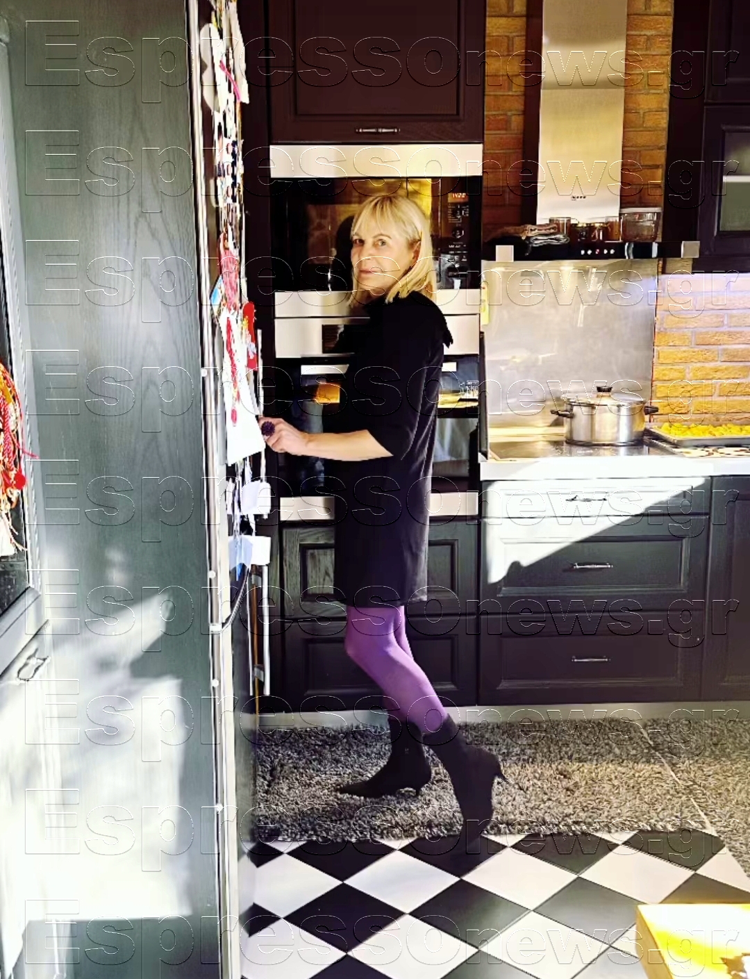 Η όμορφη κυρία της φωτογραφίας πόζαρε στον φακό του γιου της ενώ ξεκινούσε τη μαγειρική στη μοντέρνα κουζίνα της.