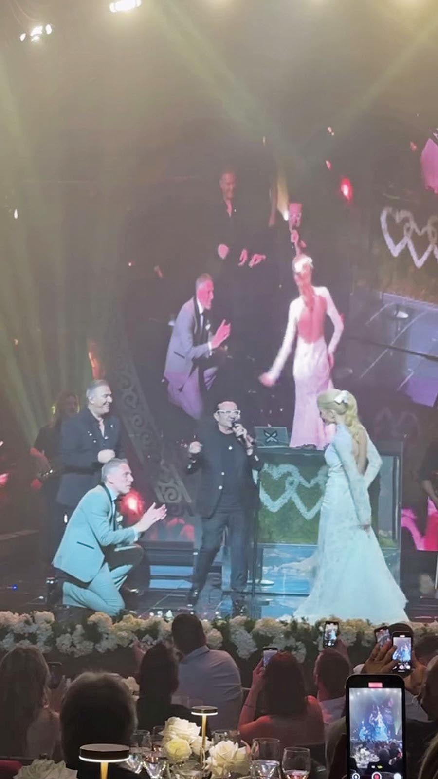 Η Ευαγγελία κάλεσε τους φίλους τους να ανέβουν πάνω στην πίστα και να χορέψουν, ενώ ο γαμπρός χόρευε και με τα τρία του παιδιά από τον πρώτο του γάμο, που έχουν άψογη σχέση με την Ευαγγελία Αραβανή και ήταν πολύ χαρούμενα με τη χαρά του πατέρα τους. Ξεχωριστή στιγμή της βραδιάς ήταν όταν το ζευγάρι χόρεψε στην πίστα αγκαλιά το τραγούδι του Ρέμου «Σ’ αγαπώ», ενώ έδιναν συνεχώς φιλιά στο στόμα. Λίγο αργότερα η νύφη αποθεώθηκε με το ζεϊμπέκικο που χόρεψε, το οποίο αφιέρωσε στον σύζυγό της.