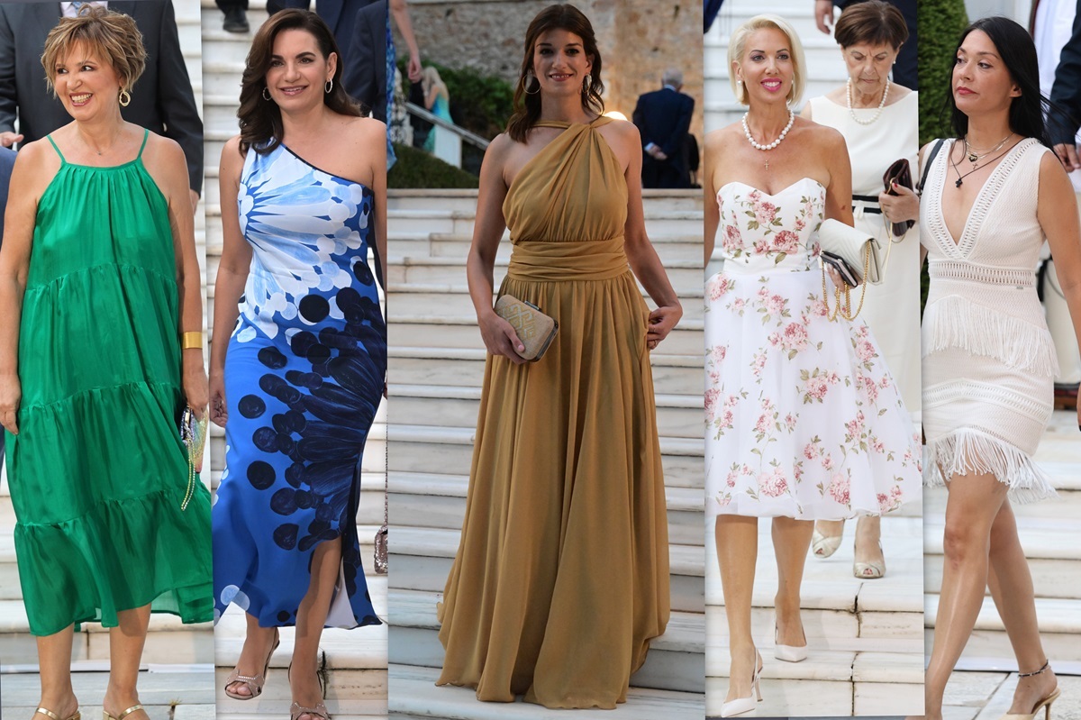 Μαυρισμένη ήταν η Κατερίνα Μονογυιού, με την εμφάνισή της να έχει αέρα 50s, αφού ντύθηκε με ένα strapless φλοράλ φόρεμα, το οποίο συνδύασε με ένα κολιέ statement. Η Ευαγγελία Λιακούλη, διάλεξε ένα φόρεμα με έντονα μοβ λουλούδια σε μαύρο φόντο και αντίστοιχα μοβ σκουλαρίκια. Η Δόμνα Μιχαηλίδου επέλεξε για την περίσταση μία λιτή και αδιάφορη, γαλάζια ολόσωμη φόρμα με διακριτικό ζωνάκι, ενώ η Ελενα Ράπτη δεν παιδεύτηκε να διαλέξει, καθώς βρήκε το κλασικό μαύρο και το έβαλε.