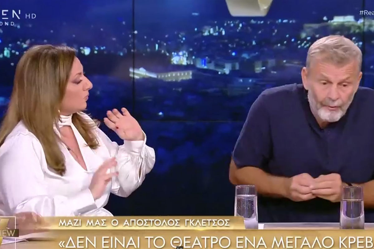 Στη χθεσινή εκπομπή, ωστόσο, με καλεσμένο τον Απόστολο Γκλέτσο τα πράγματα δεν εξελίχθηκαν ομαλά. Οι τόνοι ανάμεσα στον γνωστό ηθοποιό και τη Σοφία Μουτίδου ανέβηκαν κάνοντας τον Απόστολο Γκλέτσο να πετάξει το μικρόφωνό του και να αποχωρήσει από το πλατό.