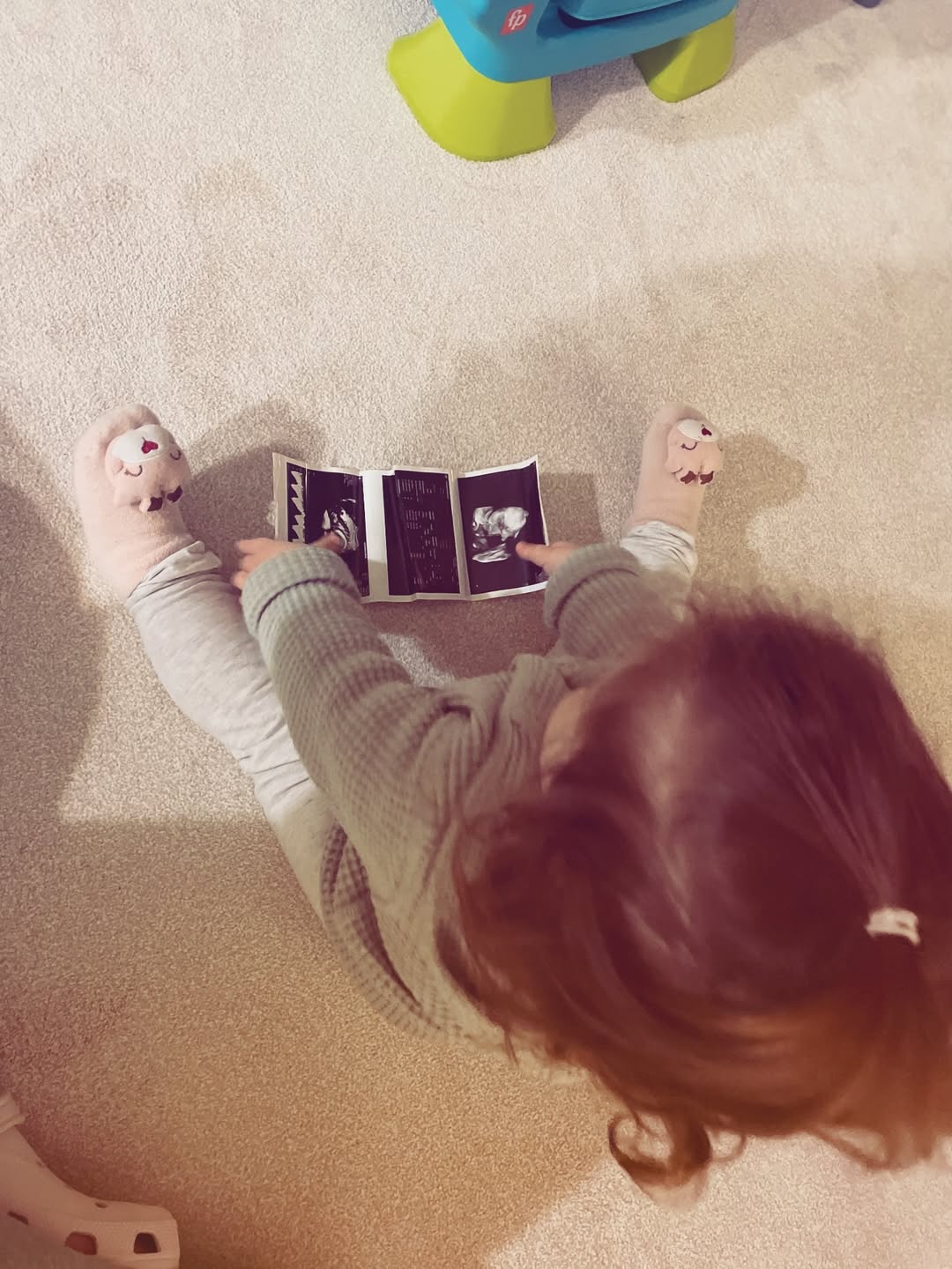 Η ηθοποιός δημοσίευσε φωτογραφίες με φουσκωμένη κοιλίτσα και την 22 μηνών κορούλα της να κρατάει το υπερηχογράφημα και έγραψε στη λεζάντα: «Επειδή την προηγούμενη φορά σου είχε αρέσει πολύ αυτό το δώρο για τα γενέθλια σου είπα να το επαναλάβω.