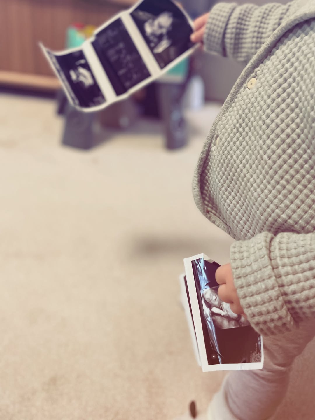 Η ηθοποιός δημοσίευσε φωτογραφίες με φουσκωμένη κοιλίτσα και την 22 μηνών κορούλα της να κρατάει το υπερηχογράφημα και έγραψε στη λεζάντα: «Επειδή την προηγούμενη φορά σου είχε αρέσει πολύ αυτό το δώρο για τα γενέθλια σου είπα να το επαναλάβω.