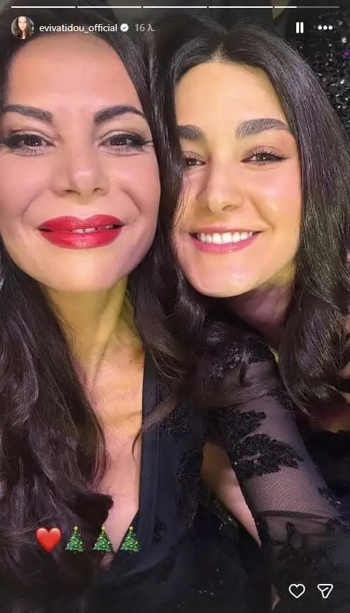 Στο ίδιο κλίμα, η Εύη Βατίδου μοιράστηκε στιγμιότυπο με την κόρη της, Μάιρα, και τον γιο της, Χρήστο, στέλνοντας τις δικές της γιορτινές ευχές.