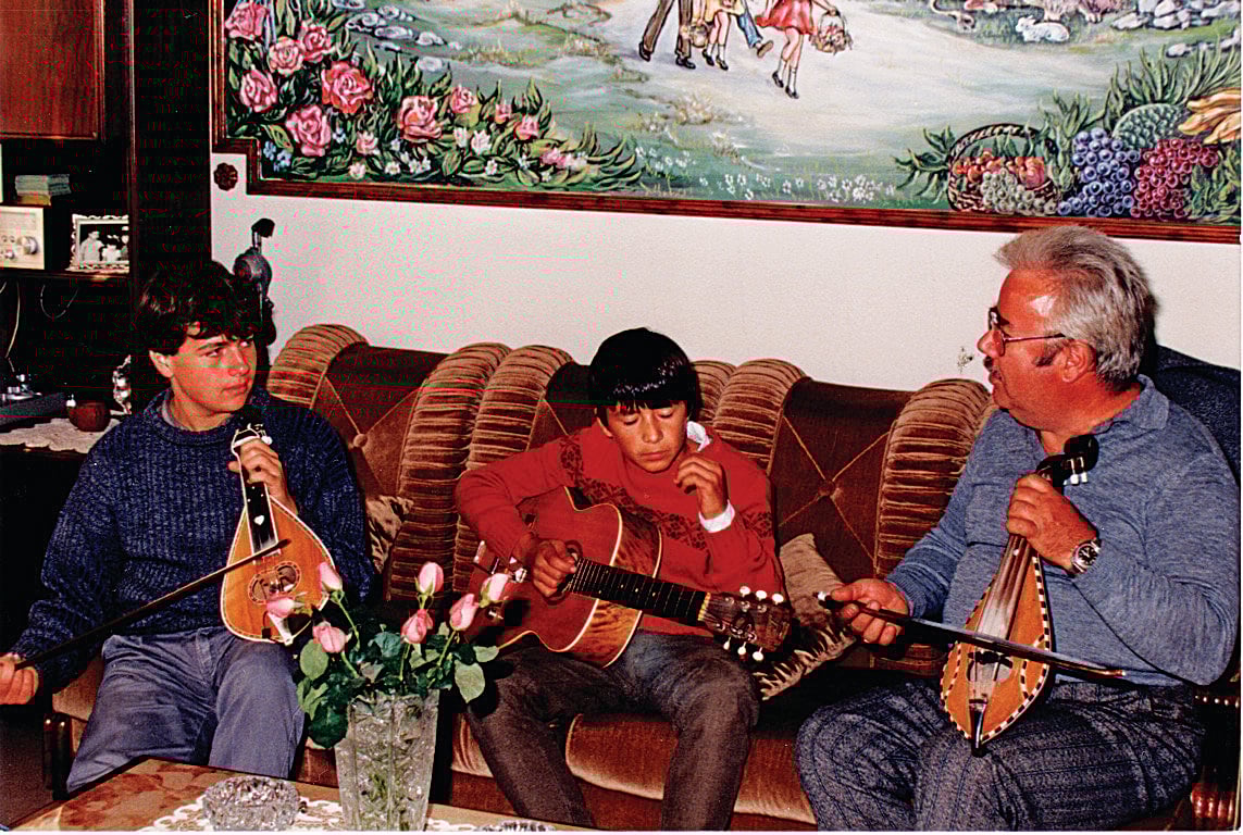 Πιτσιρικάς με έναν ξάδελφο του και τον ερασιτέχνη λυράρη θείο του Δημήτρη Κουτρούλη