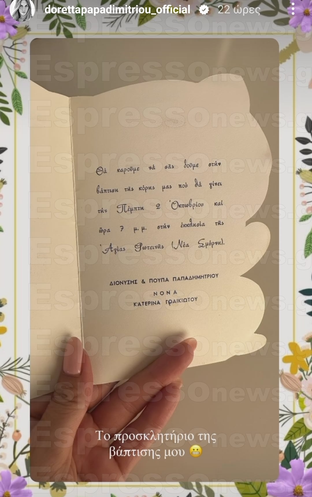 Ναι ναι καλά ακούσατε και αφού το έβγαλε μία φωτογραφία στη συνέχεια το πόσταρε στα social media. «Το προσκλητήριο της βάπτισής μου», έγραψε στη λεζάντα.